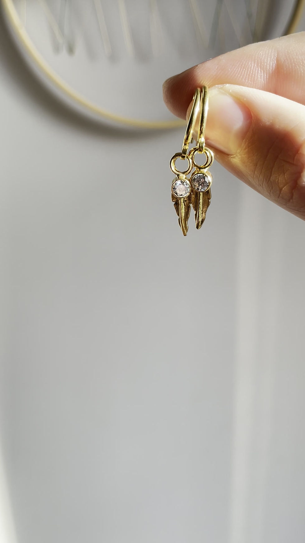Cz Feather Huggy Hoop Studs 18ct Gold Vermeil